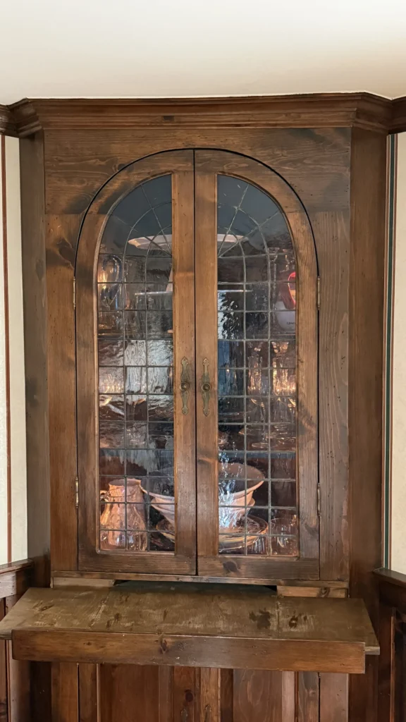 Cozy outdoor seating area with brick patio and autumn foliage.